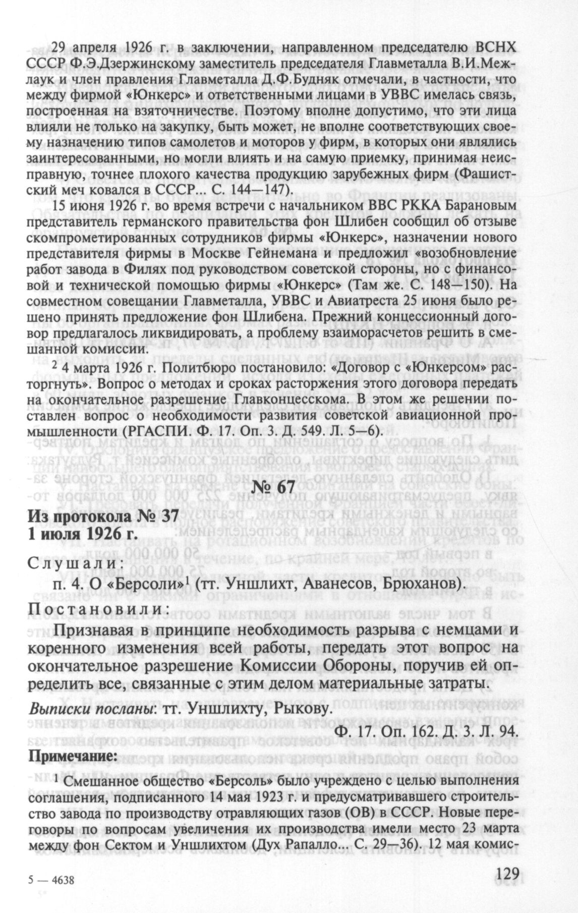 Особый протокол заседания Политбюро ЦК ВКП(б) № 37. 1 июля 1926 г. // РГАСПИ. Ф. 17. Оп. 162. Д. 3. Л. 94.