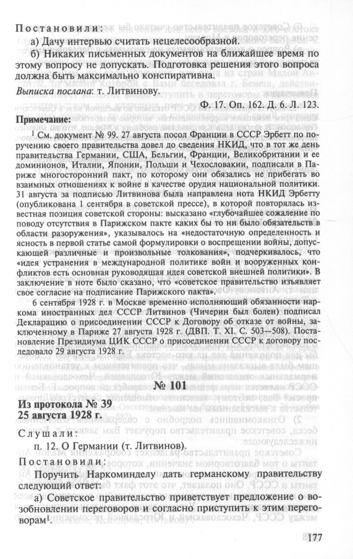Особый протокол заседания Политбюро ЦК ВКП(б) № 39. 25 августа 1928 г. // РГАСПИ. Ф. 17. Оп. 162. Д. 6. Л. 123.