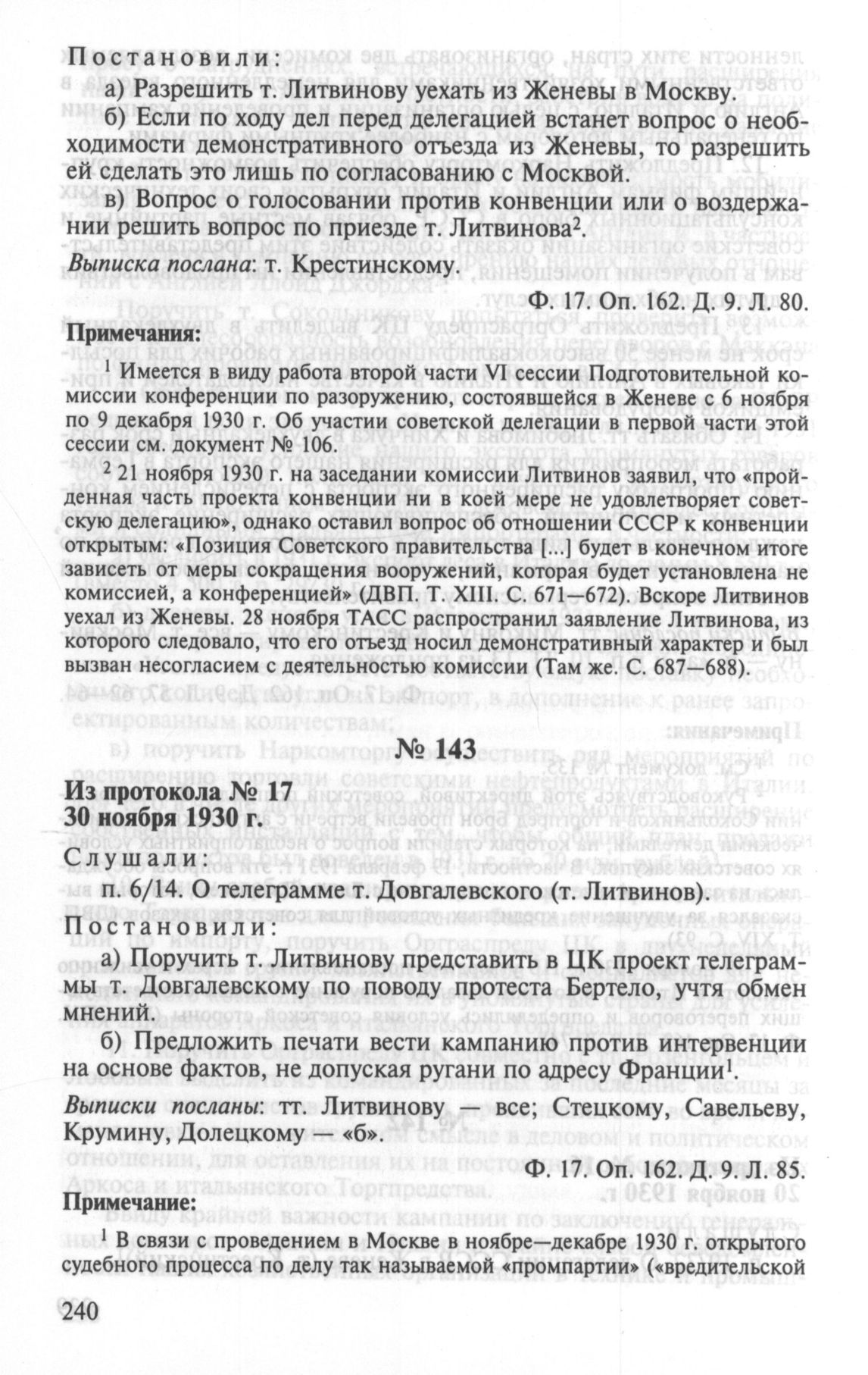 Особый протокол заседания Политбюро ЦК ВКП(б) № 17. 30 ноября 1930 г. // РГАСПИ. Ф. 17. Оп. 162. Д. 9. Л. 85.