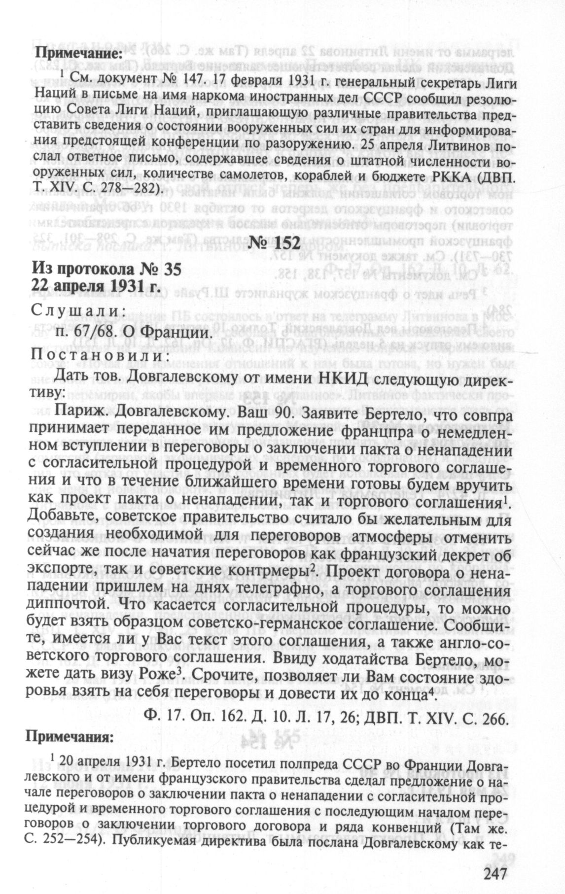 Особый протокол заседания Политбюро ЦК ВКП(б) № 35. 22 апреля 1931 г. // РГАСПИ. Ф. 17. Оп. 162. Д. 10. Л. 17, 26.; ДВП. Т. XIV. С. 266.
