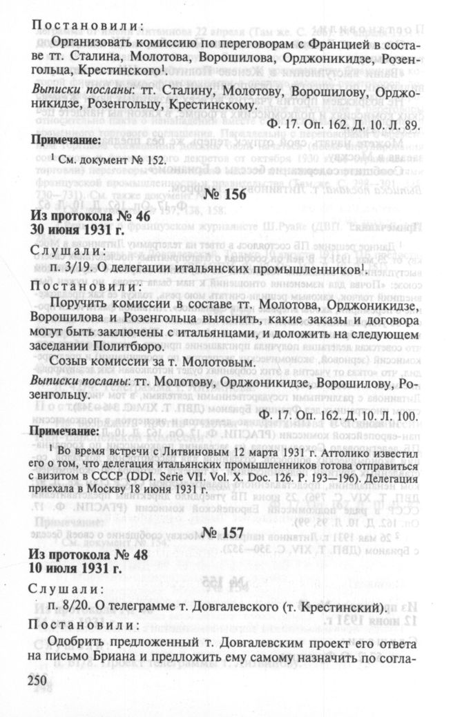 Особый протокол заседания Политбюро ЦК ВКП(б) № 46. 30 июня 1931 г. // РГАСПИ. Ф. 17. Оп. 162. Д. 10. Л. 100.