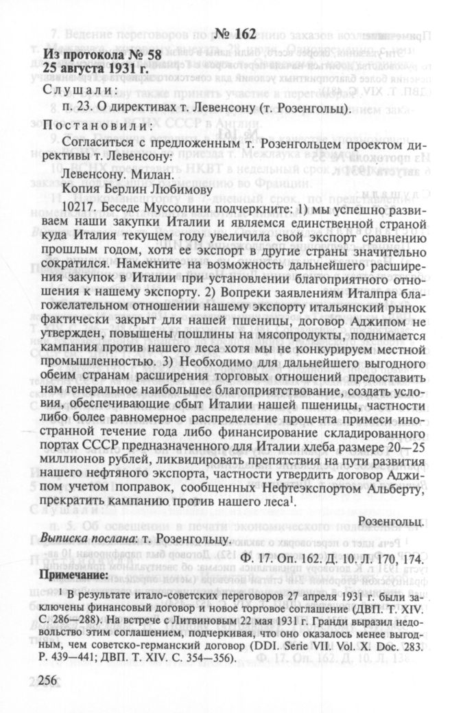 Особый протокол заседания Политбюро ЦК ВКП(б) № 58. 25 августа 1931 г. // РГАСПИ. Ф. 17. Оп. 162. Д. 10. Л. 170, 174.