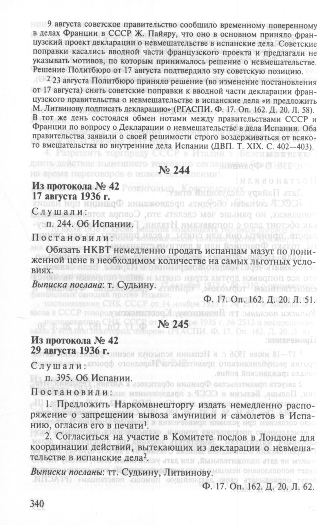 Особый протокол заседания Политбюро ЦК ВКП(б) № 42. 17 августа 1936 г. // РГАСПИ. Ф. 17. Оп. 162. Д. 20. Л. 51.