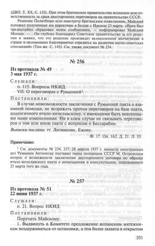 Особый протокол заседания Политбюро ЦК ВКП(б) № 51. 22 июня 1937 г.