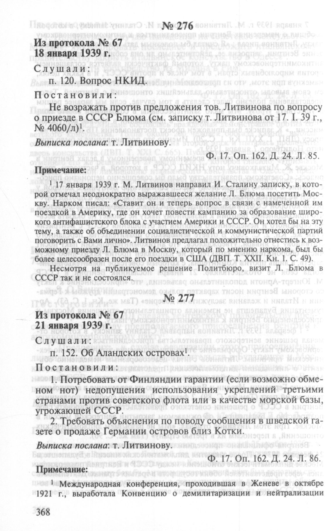 Особый протокол заседания Политбюро ЦК ВКП(б) № 67. 21 января 1939 г. // РГАСПИ. Ф. 17. Оп. 162. Д. 24. Л. 86.