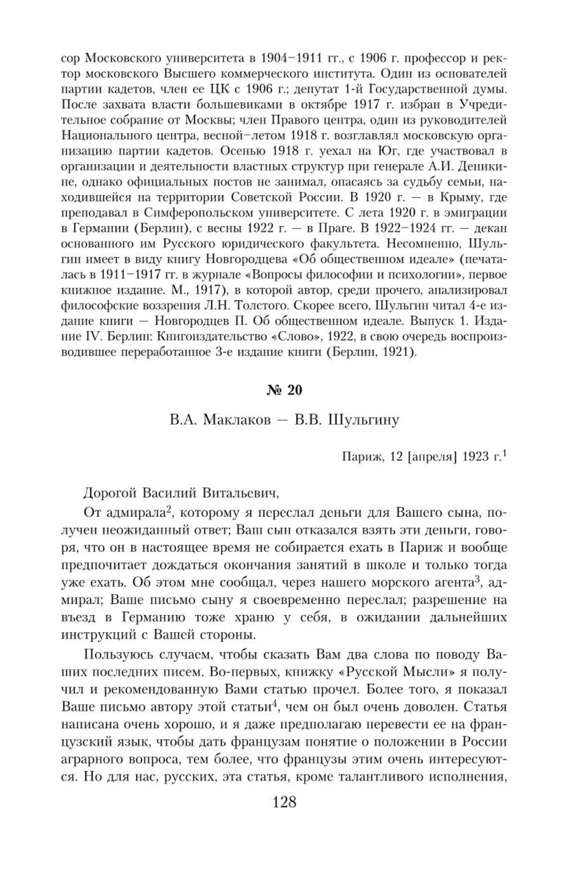 Письмо. В.А. Маклаков — В.В. Шульгину. Париж, 12 [апреля] 1923 г. // Hoover Institution Archives, Vasily Maklakov Collection. Box 13. Folder 8.