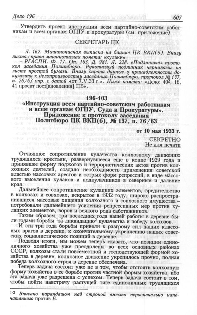 Главная Серия «Архивы Кремля» Политбюро и крестьянство: высылка, спецпоселение. 1930—1940: В 2 кн. Политбюро и крестьянство: высылка, спецпоселение. 1930—1940: В 2 кн... Документы Инструкция всем партийно-советским работникам и всем органам ГПУ, С...