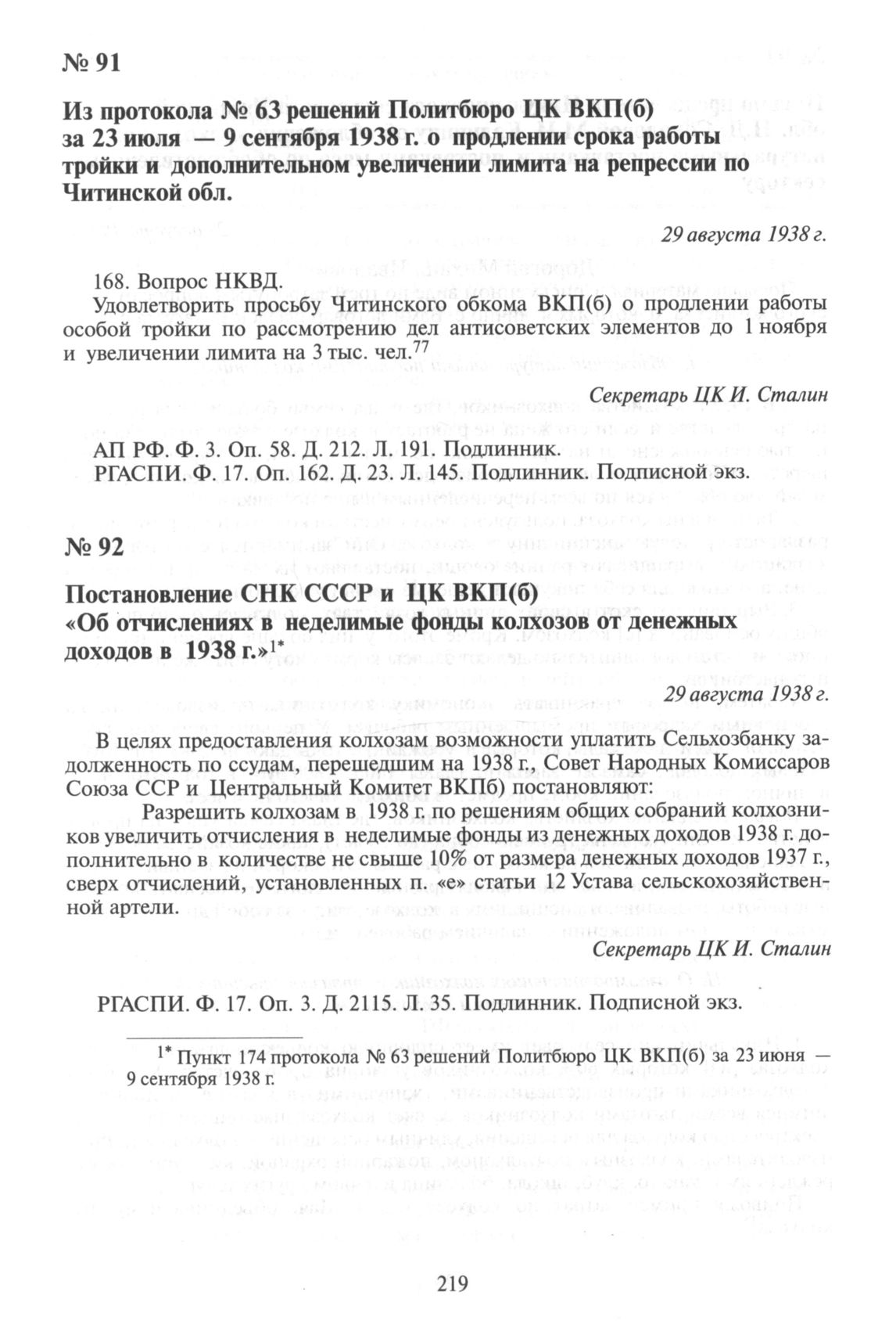 Из протокола № 63 решений Политбюро ЦК ВКП(б) за 23 июля — 9 сентября 1938 г. о продлении срока работы тройки и дополнительном увеличении лимита на репрессии по Читинской обл. 29 августа 1938 г. // АП РФ. Ф. 3. Оп. 58. Д. 212. Л. 191. Подлинник. РГАСПИ. Ф. 17. Оп. 162. Д. 23. Л. 145. Подлинник. Подписной экз.