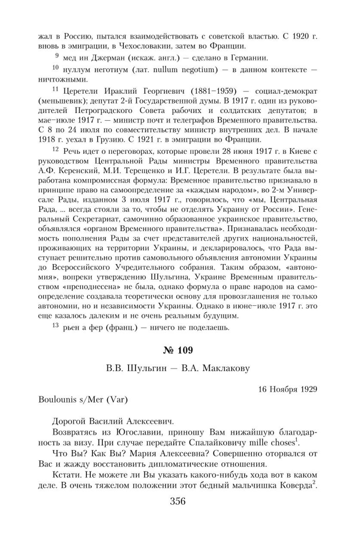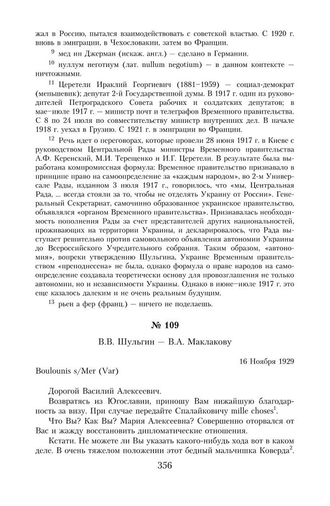 Спор о России: В. А. Маклаков — В. В. Шульгин. Переписка 1919–1939 гг. — М.: РОССПЭН, 2012.