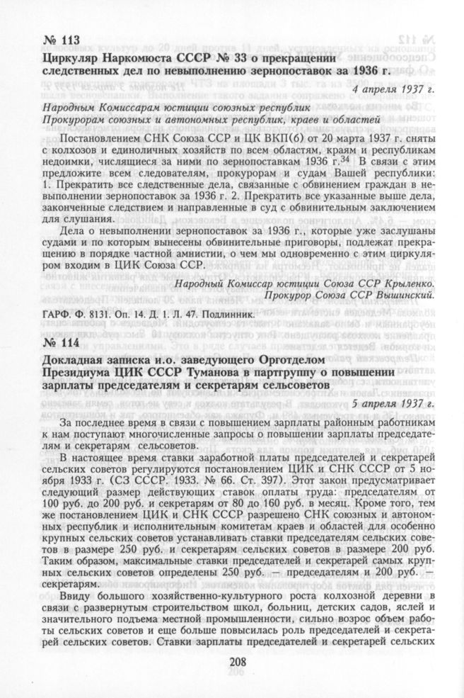 Циркуляр Наркомюста СССР № 33 о прекращении следственных дел по невыполнению зернопоставок за 1936 г. 4 апреля 1937 г.