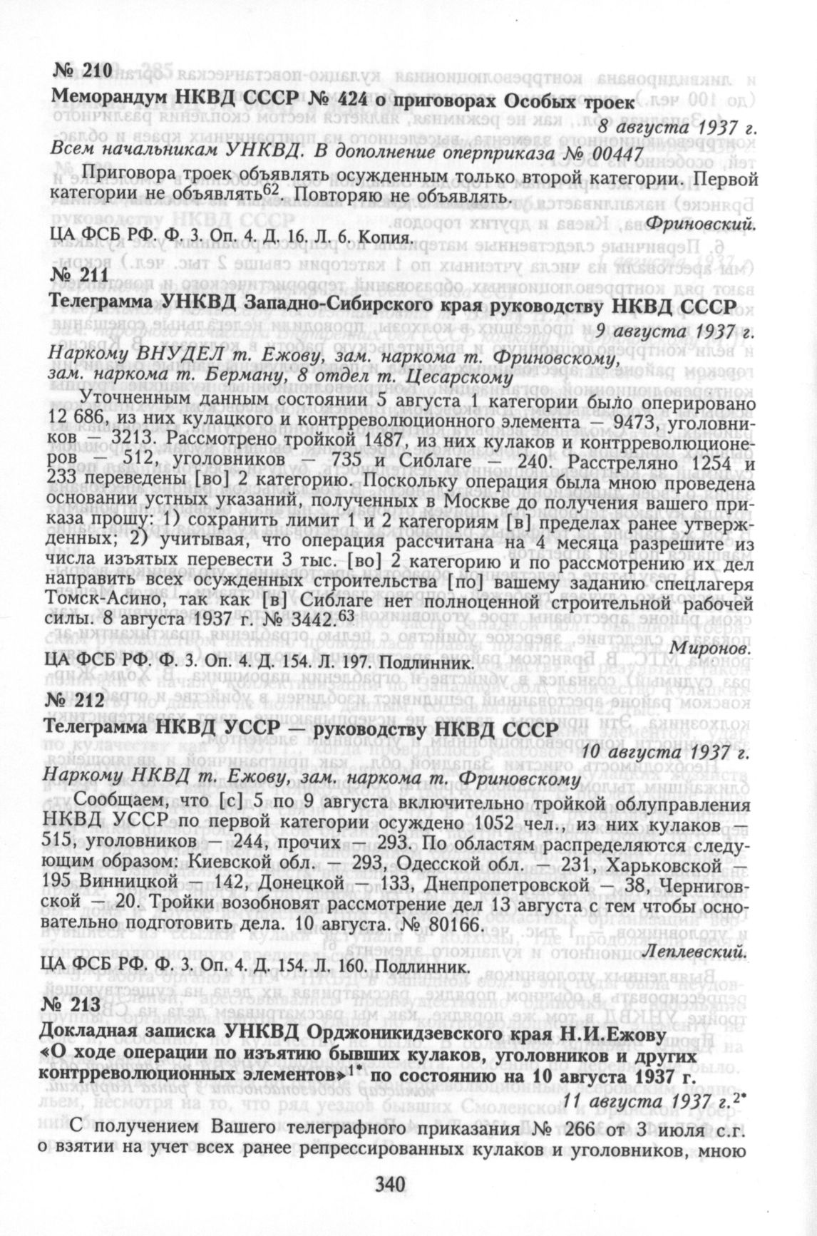 Трагедия советской деревни. Коллективизация и раскулачивание. 1927—1939: Документы и материалы. В 5-ти тт. Т. 5. 1937—1939. Кн. 1. 1937. — М.: РОССПЭН, 2004.