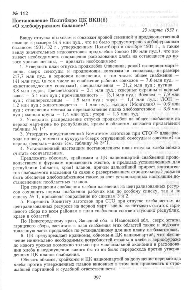 Постановление Политбюро ЦК ВКП(б) «О хлебофуражном балансе». 23 марта 1932 г.