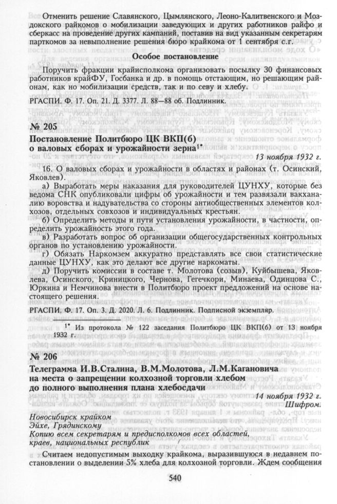 Трагедия советской деревни. Коллективизация и раскулачивание. 1927—1939: Документы и материалы. В 5-ти тт. Т. 3. Конец 1930—1933. — М.: РОССПЭН, 2001.