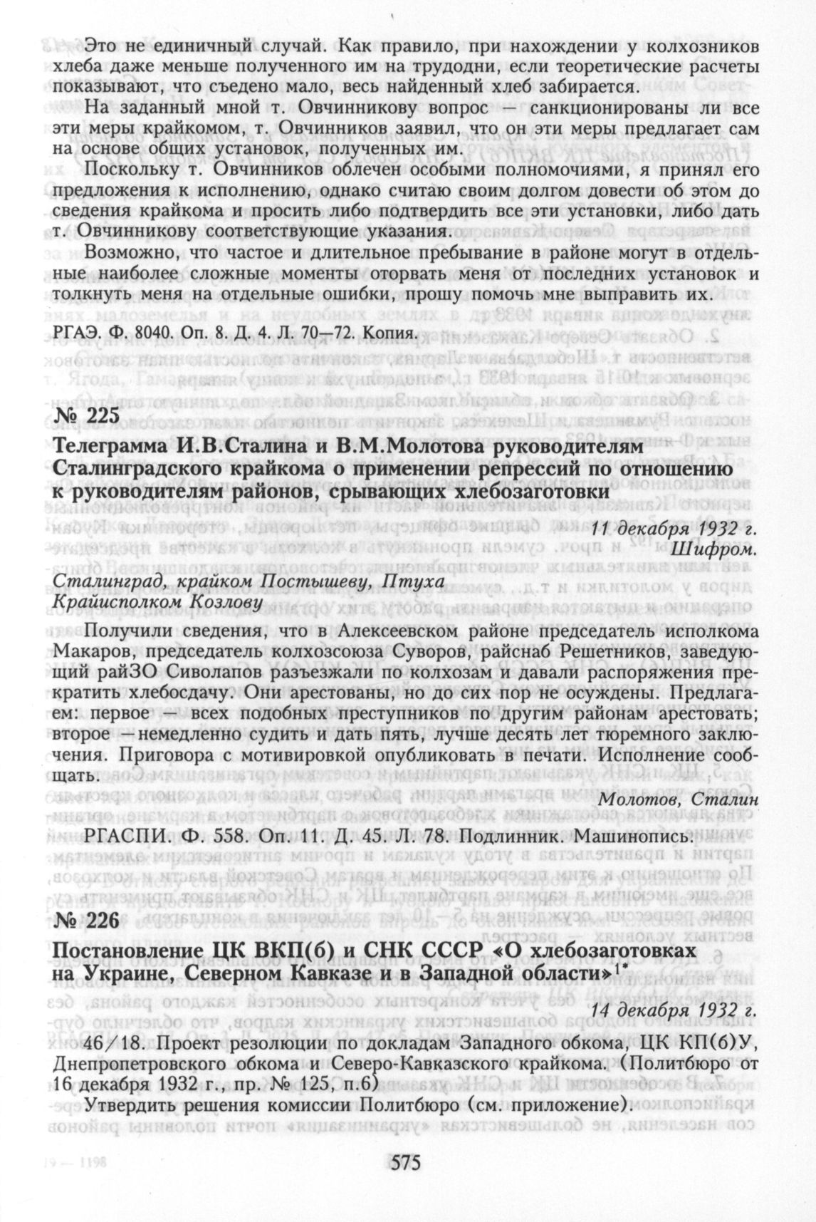 Постановление ЦК ВКП(б) и СНК СССР «О хлебозаготовках на Украине, Северном Кавказе и в Западной области». 14 декабря 1932 г. // РГАСПИ. Ф. 17. Оп. 3. Д. 2025. Л. 42—42 об. Подлинник. Подписной экземпляр.