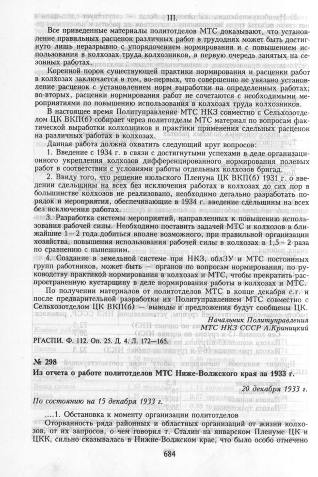 Из отчета о работе политотделов МТС Ниже-Волжского края за 1933 г. 20 декабря 1933 г. // РГАСПИ. Ф. 112. Оп. 35. Д. 7. Л. 1454-1464. Подлинник.