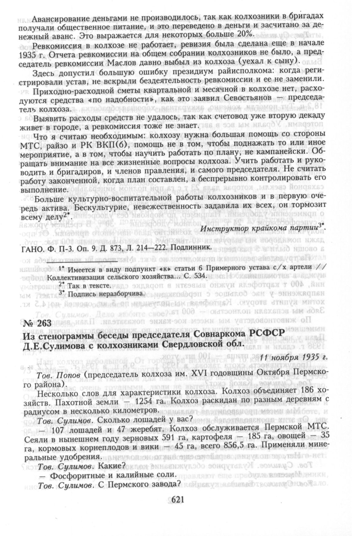 Из стенограммы беседы председателя Совнаркома РСФСР Д.Е. Сулимова с колхозниками Свердловской обл. 11 ноября 1935 г. // ГАРФ. Ф. А-259. Оп. 19. Д. 153. Л. 75—86. Копия. Неправленая стенограмма.