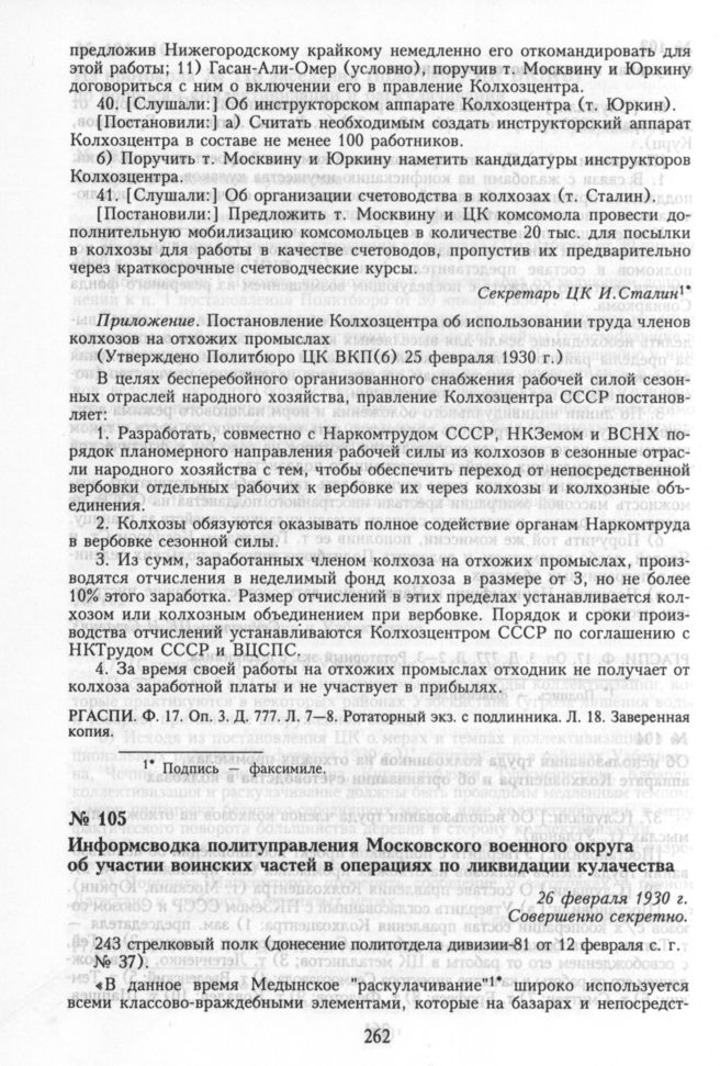 Трагедия советской деревни. Коллективизация и раскулачивание. 1927—1939. Документы и материалы. В 5-ти тт. Т. 2. Ноябрь 1929 — декабрь 1930. — М.: РОССПЭН, 2000.