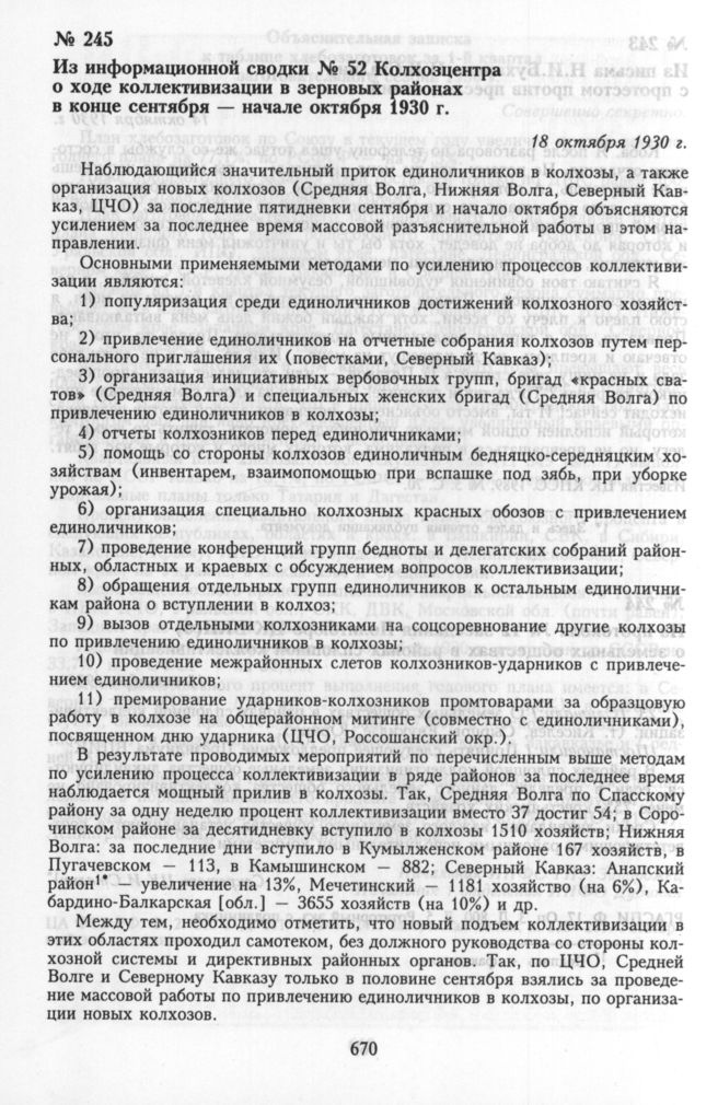 Из информационной сводки № 52 Колхозцентра о ходе коллективизации в зерновых районах в конце сентября начале октября 1930 г. 18 октября 1930 г.