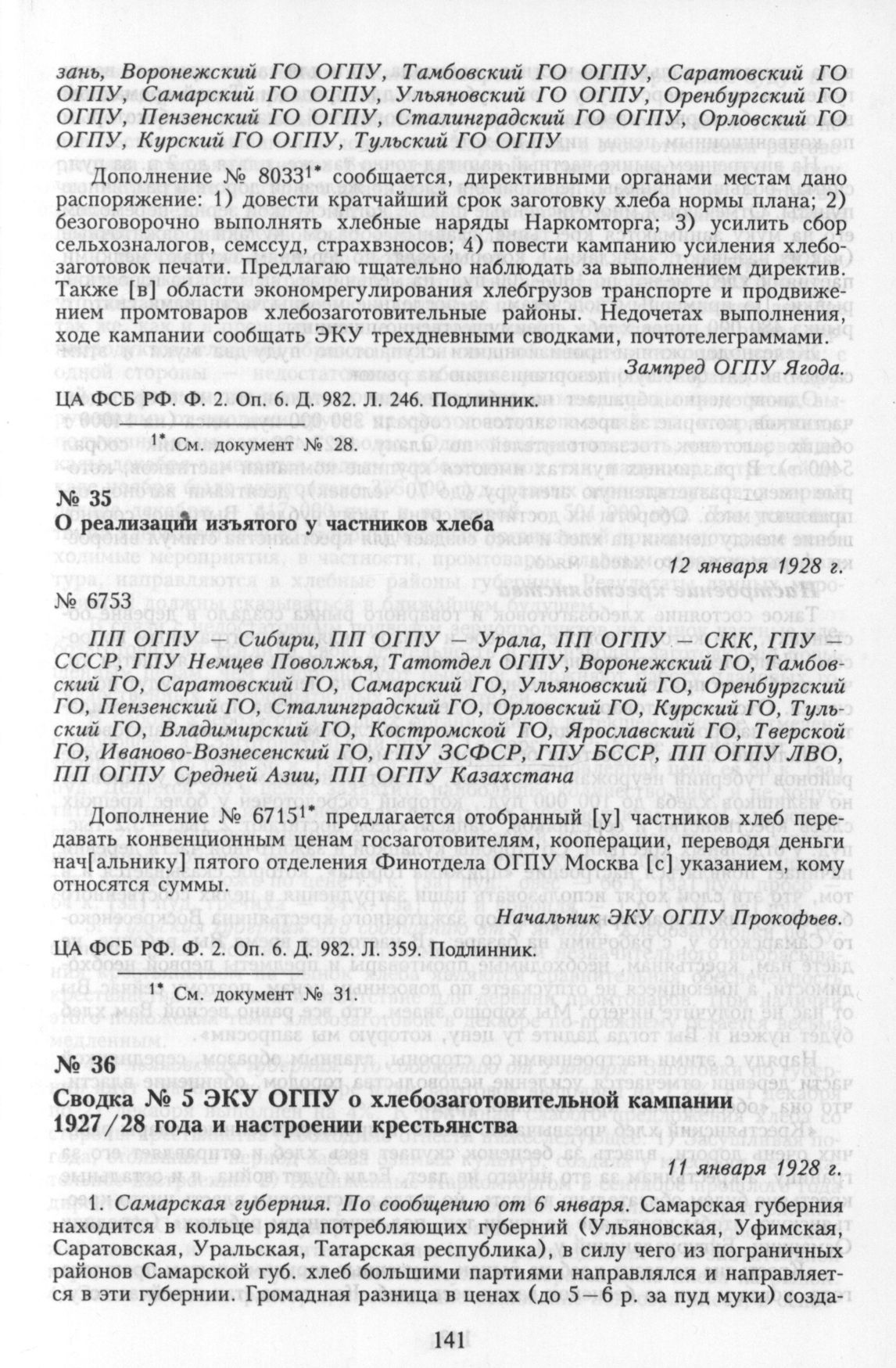 Сводка № 5 ЭКУ ОГПУ о хлебозаготовительной кампании 1927/28 года и настроении крестьянства. 11 января 1928 г. // ЦА ФСБ РФ. Ф. 2. Оп. 6. Д. 53. Л. 76—86. Подлинник.