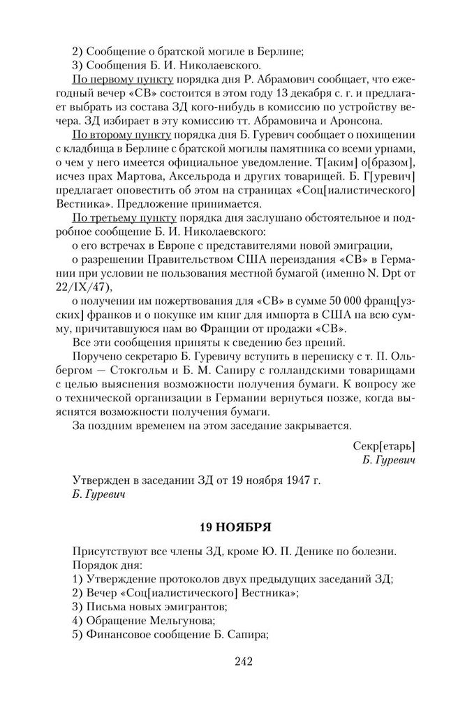 Протокол Заграничной Делегации РСДРП. 1947 г. 19 ноября