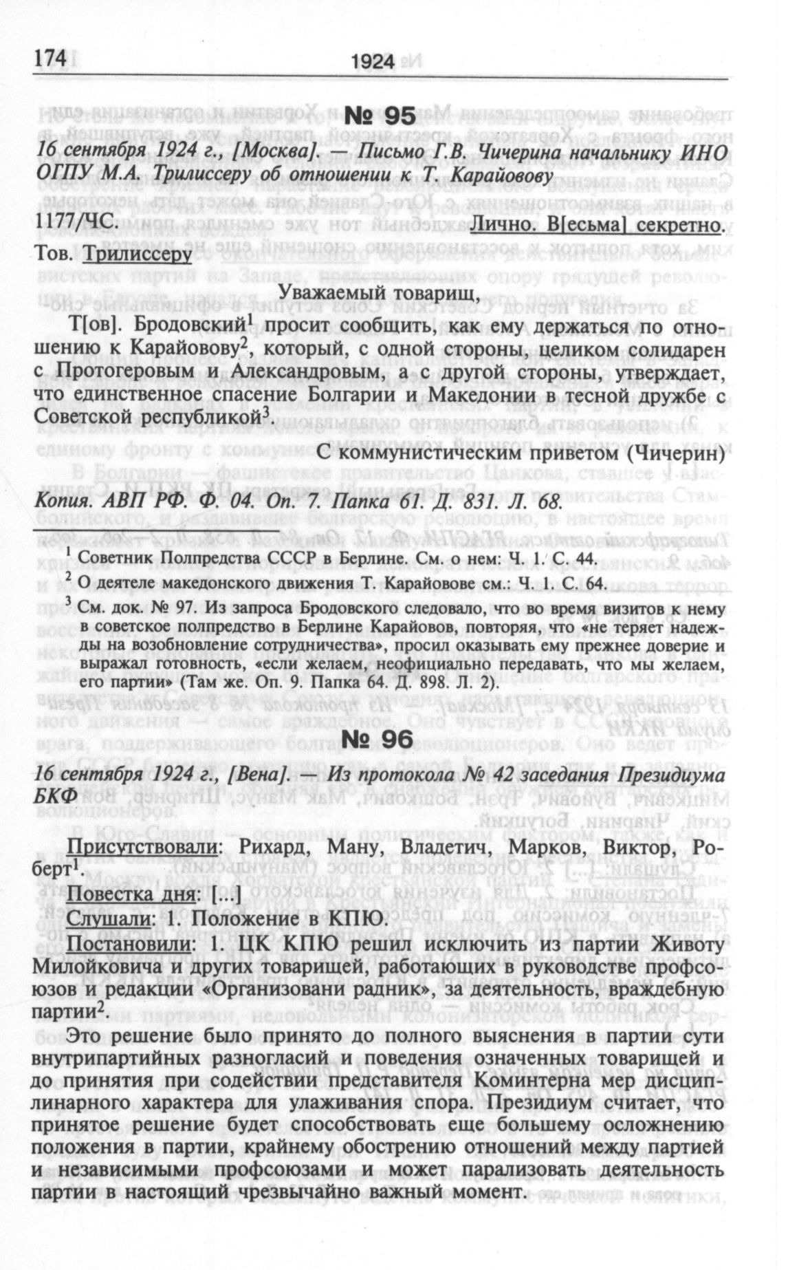 Национальный вопрос на Балканах через призму мировой революции: В документах центральных российских архивов начала—середины 1920-х годов. Ч. 2. Июнь 1924 г. — декабрь 1926 г. — М.: РОССПЭН, 2003.