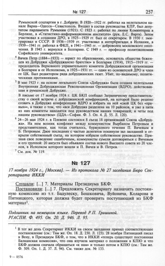 Национальный вопрос на Балканах через призму мировой революции: В документах центральных российских архивов начала—середины 1920-х годов. Ч. 2. Июнь 1924 г. — декабрь 1926 г. — М.: РОССПЭН, 2003.