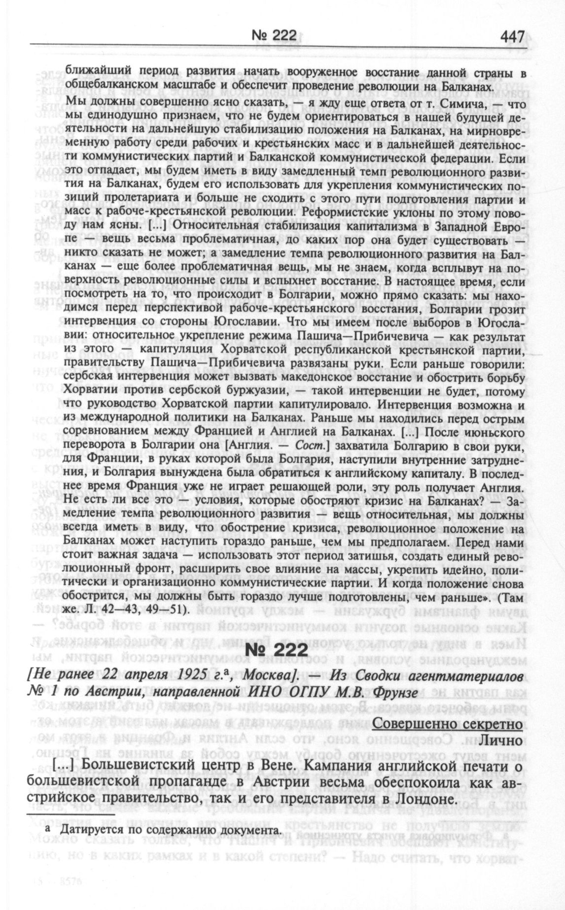 [Не ранее 22 апреля 1925 г., Москва]. — Из Сводки агентматериалов № 1 по Австрии, направленной ИНО ОГПУ М. В. Фрунзе // Заверенная копия. РГВА. Ф. 33987. Оп. 3. Д. 101. Л. 1128-1129.