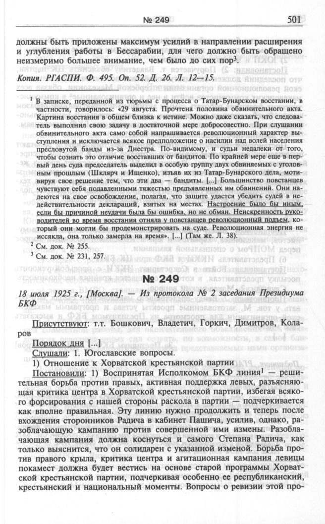 18 июля 1925 г., [Москва]. — Из протокола № 2 заседания Президиума БКФ // Подлинник. РГАСПИ. Ф. 509. Оп. 1. Д. 64. Л. 149-150.