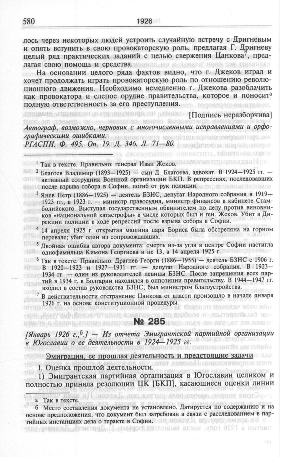 [Январь 1926 г.] — Из отчета Эмигрантской партийной организации в Югославии о ее деятельности в 1924—1925 гг. // Рукописная копия на болгарском языке. РГАСПИ. Ф. 495. Оп. 282. Д. 8. Л. 97-107.