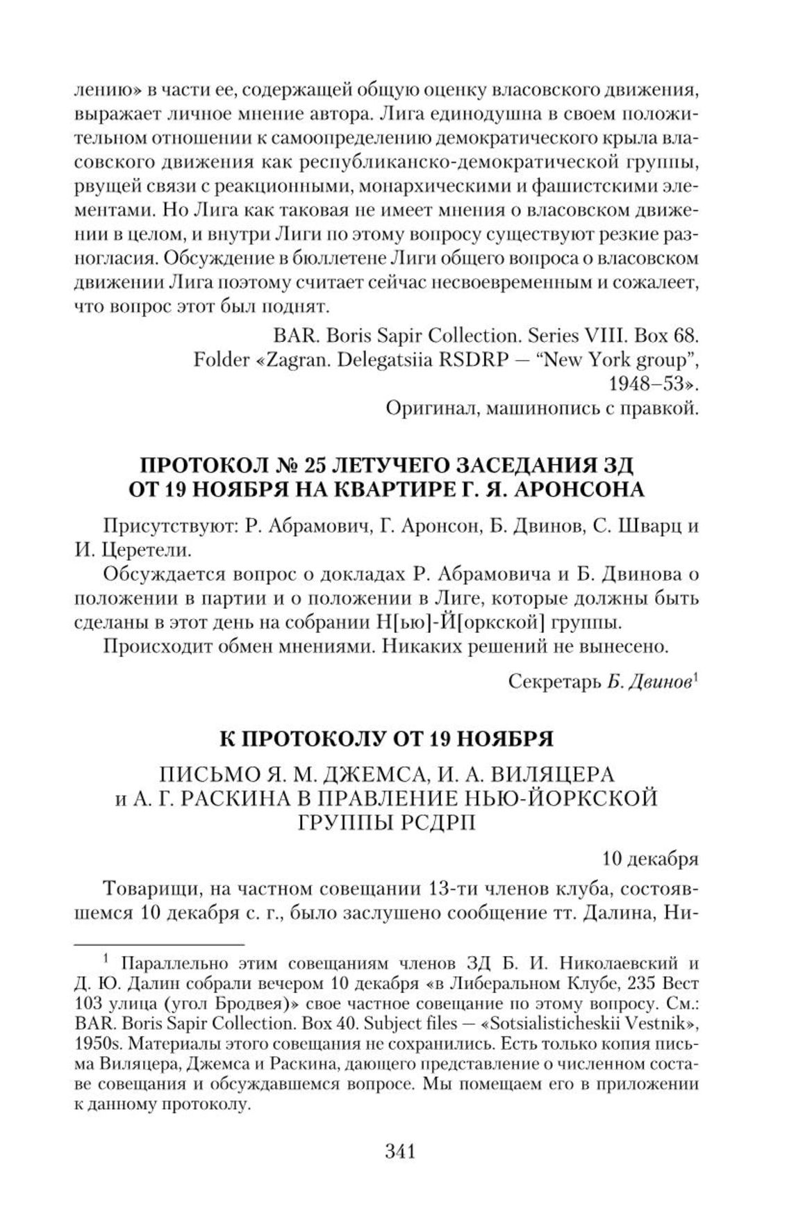 Протокол Заграничной Делегации РСДРП. 1949 г. Протокол № 25 летучего заседания ЗД от 19 ноября на квартире Г. Я. Аронсона