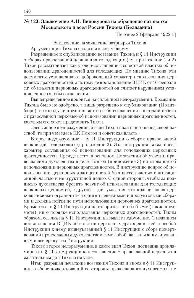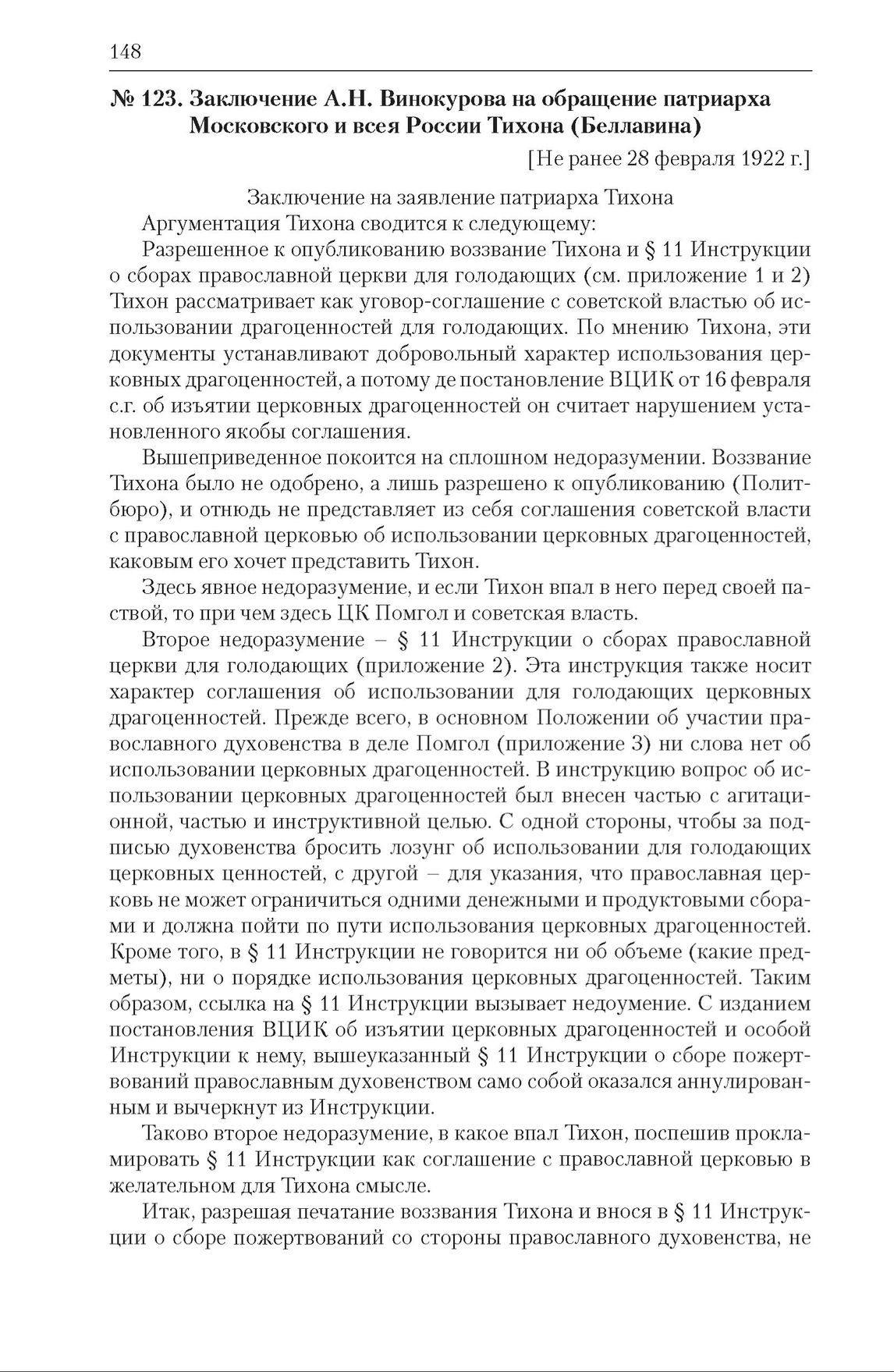 Заключение А.Н. Винокурова на обращение патриарха Московского и всея России Тихона (Беллавина). [Не ранее 28 февраля 1922 г.] // ГА РФ. Ф. Р-1235. Оп. 97. Д. 54а. Л. 40–41. Подлинник. Машинописный текст. Подпись – автограф.