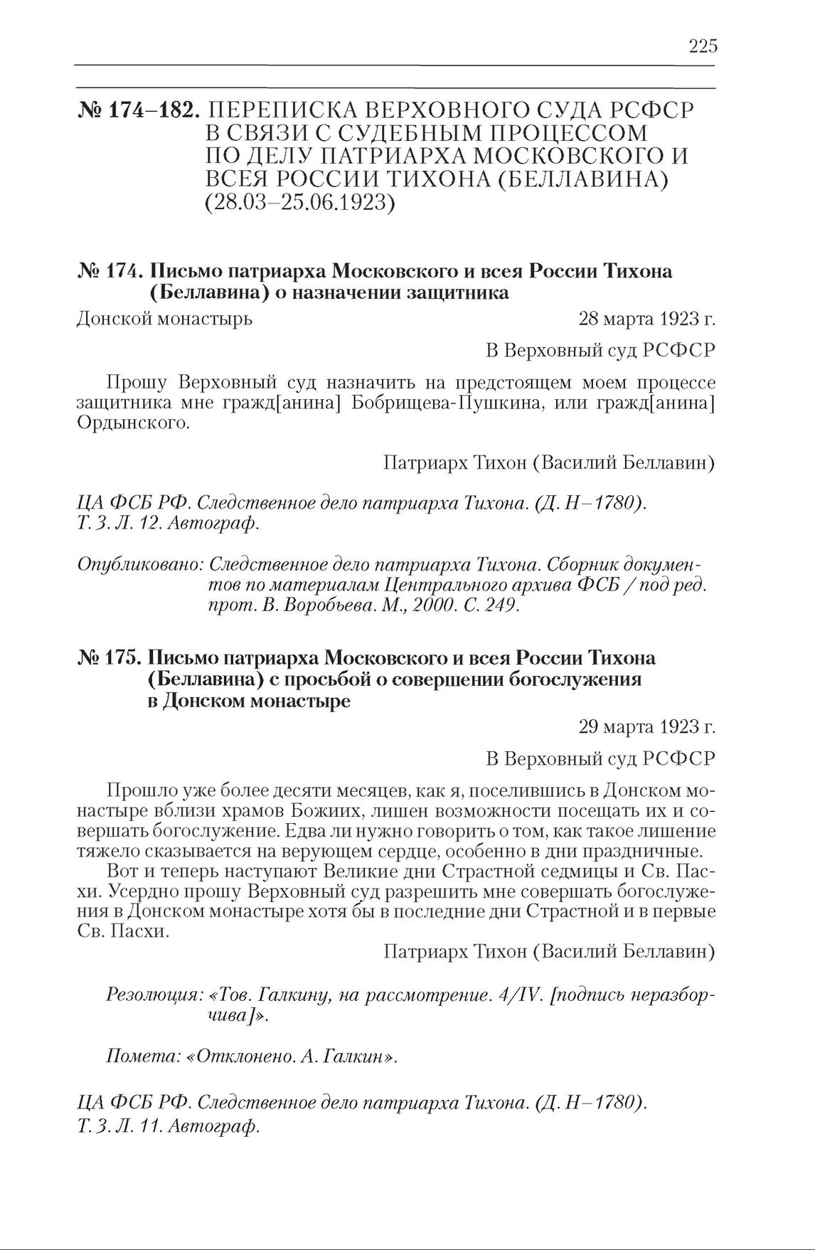 «Дело» патриарха Тихона / публ. М.И. Одинцова // Отечественные архивы. 1993. № 6. С. 63.