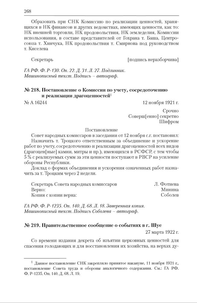 Конфессиональная политика советского государства. 1917—1991 гг. : Документы и материалы : в 6 т. Т. 1 : в 4 кн. : 1917-1924 гг. Кн. 2 : Центральные органы государственной власти и управления в РСФСР: создание нормативно-правовой базы деятельности религиозных объединений. — М. : Политическая энциклопедия, 2018.