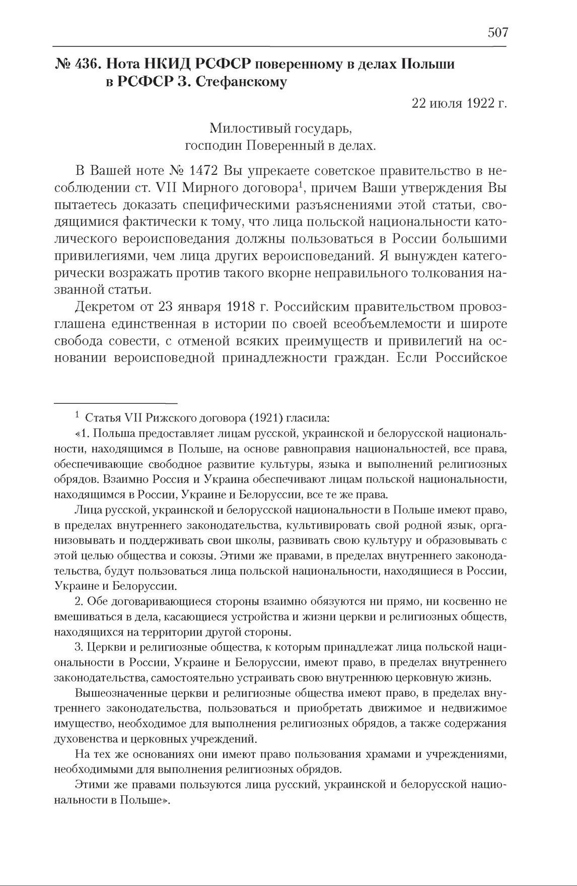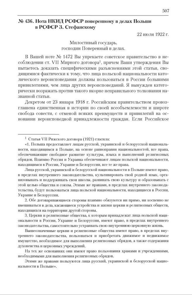Нота НКИД РСФСР поверенному в делах Польши в РСФСР З. Стефанскому. 22 июля 1922 г. // Опубликовано: Известия. 1922. 2 августа.