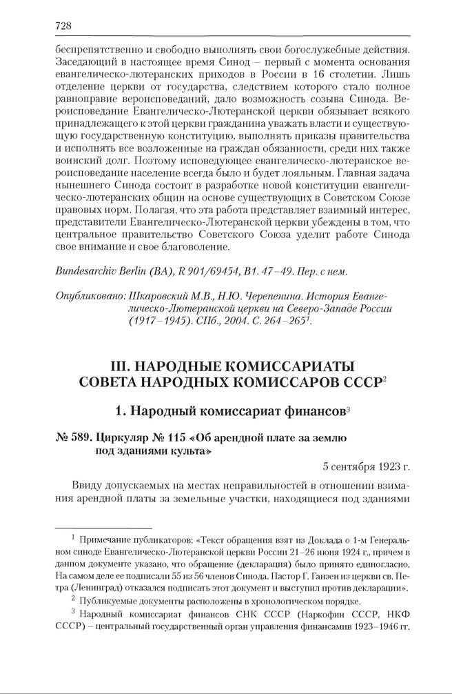 Циркуляр Народного комиссариата финансов СССР № 115 «Об арендной плате за землю под зданиями культа». 5 сентября 1923 г. // Печатается по: Гидулянов П. В. Отделение церкви от государства в СССР: Полный сборник декретов, ведомственных распоряжений и определений Верховного Суда РСФСР и других социалистических республик. М., 1926. С. 204–205.