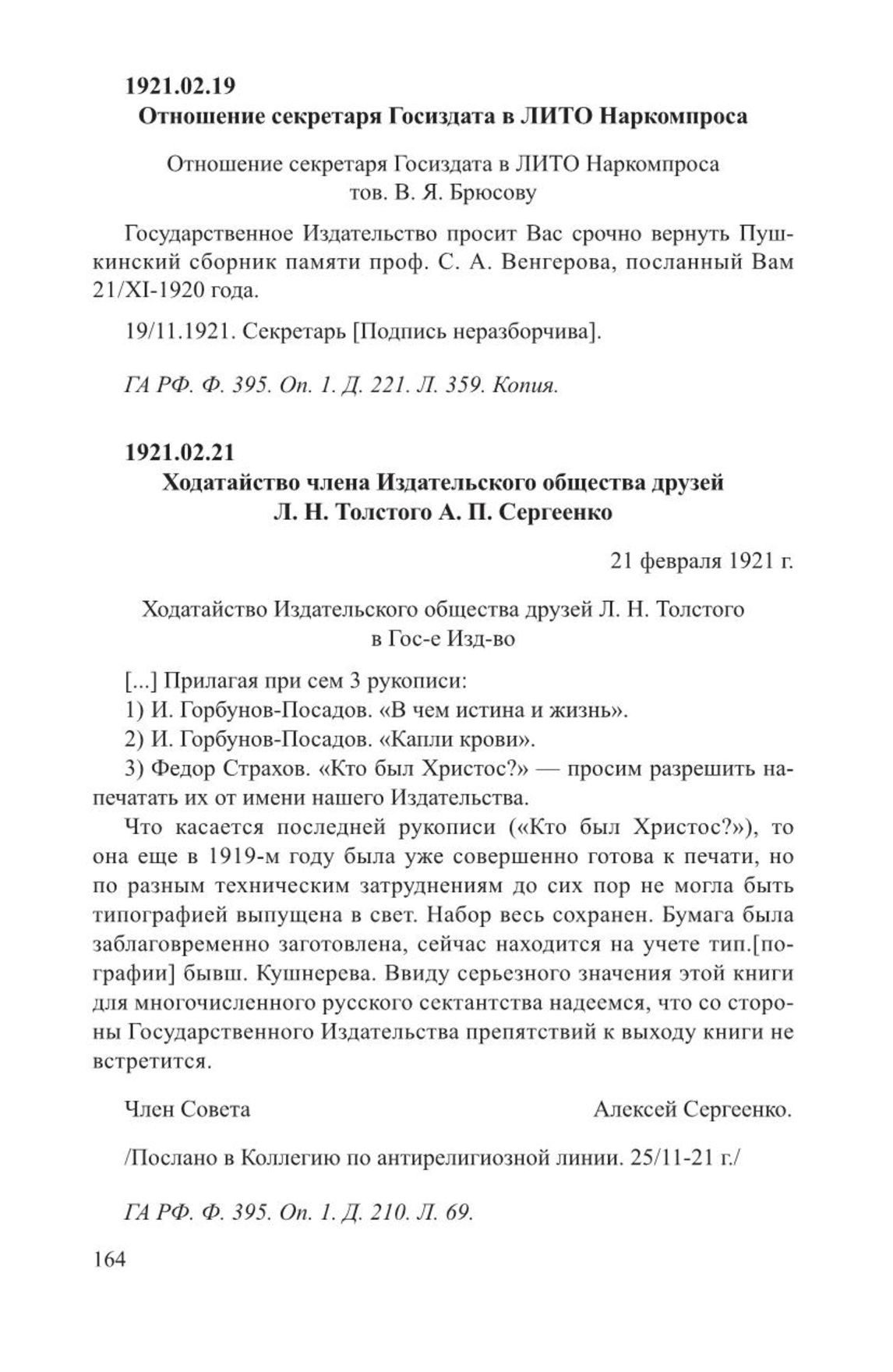 Ходатайство члена Издательского общества друзей Л. Н. Толстого А. П. Сергеенко. 21 февраля 1921 г. // ГА РФ. Ф. 395. Оп. 1. Д. 210. Л. 69.