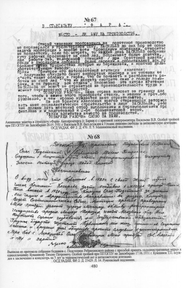Анонимная записка в стенгазету «Фара». Май 1931 г.