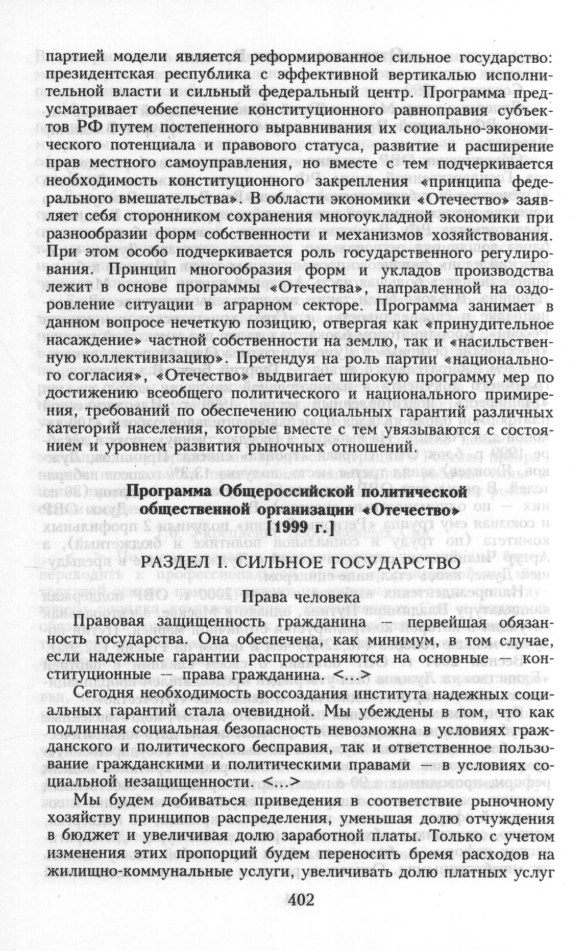 Программа Общероссийской политической общественной организации «Отечество». [1999 г.] // Программа Общероссийской политической общественной организации «Отечество» // Материалы Второго съезда ОПОО «Отечество». Ярославль, 1999. С. 77-155.