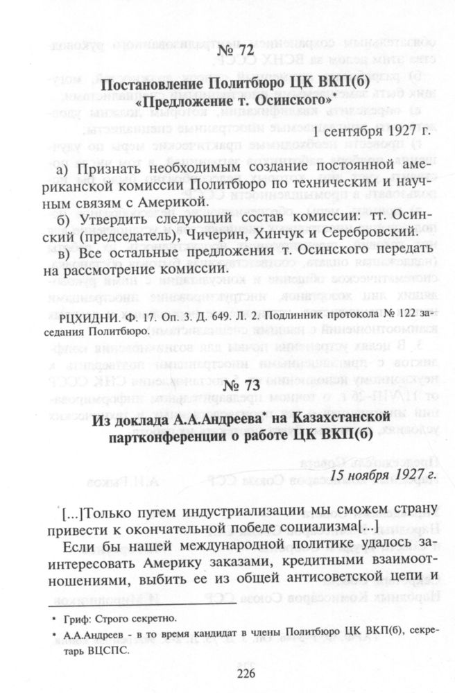 Из доклада А.А. Андреева на Казахстанской партконференции о работе ЦК ВКП(б). 15 ноября 1927 г. // РЦХИДНИ. Ф. 73. Oп. 1. Д. 64. Л. 16, 18. Бюллетень конференции.