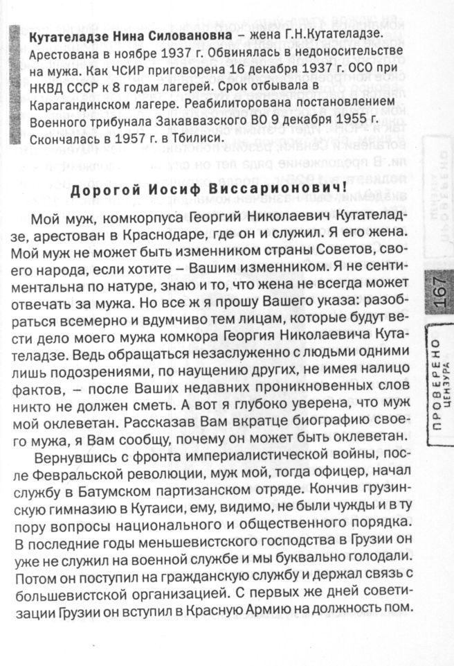 Кутателадзе Георгий Николаевич. Письмо Н. С. Кугателадзе на имя И. В. Сталина от апреля 1937 г.