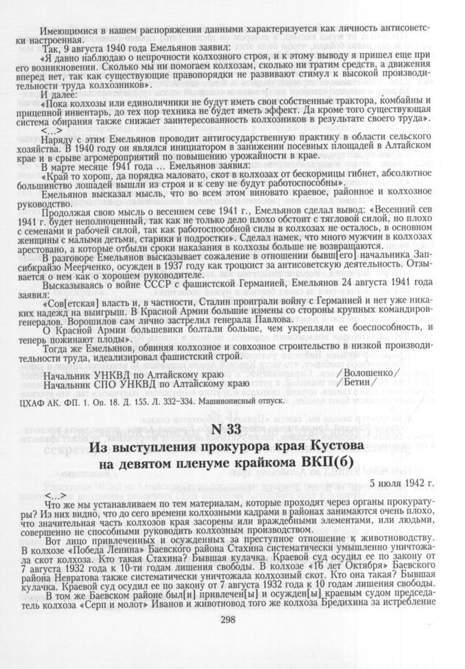 Из выступления прокурора края Кустова на девятом пленуме крайкома ВКП(б). 5 июля 1942 г. // ЦХАФ АК. ФП. 1. Оп. 18. Д. 132. Л. 222. Машинописный подлинник.