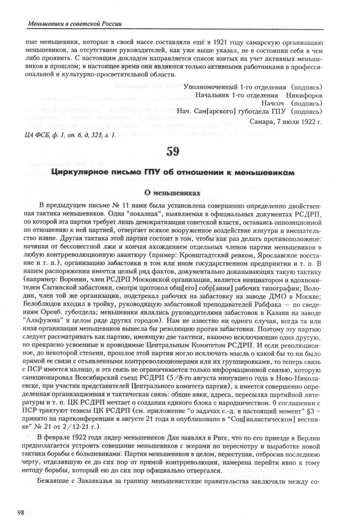 Циркулярное письмо ГПУ об отношении к меньшевикам. 27 июля 1922 г. // ЦА ФСБ, ф. 66, оп. 1, д. 26, л. 102-106.