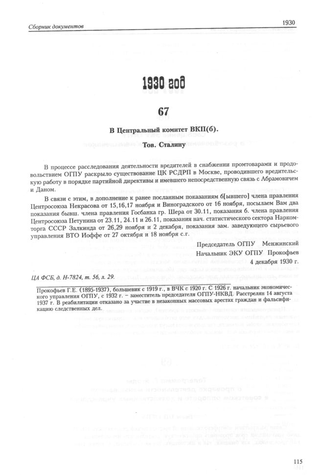 В Центральный комитет ВКП(б): Тов. Сталину 4 декабря 1930 г. // ЦА ФСБ, д. Н-7824, т. 56, л. 29.