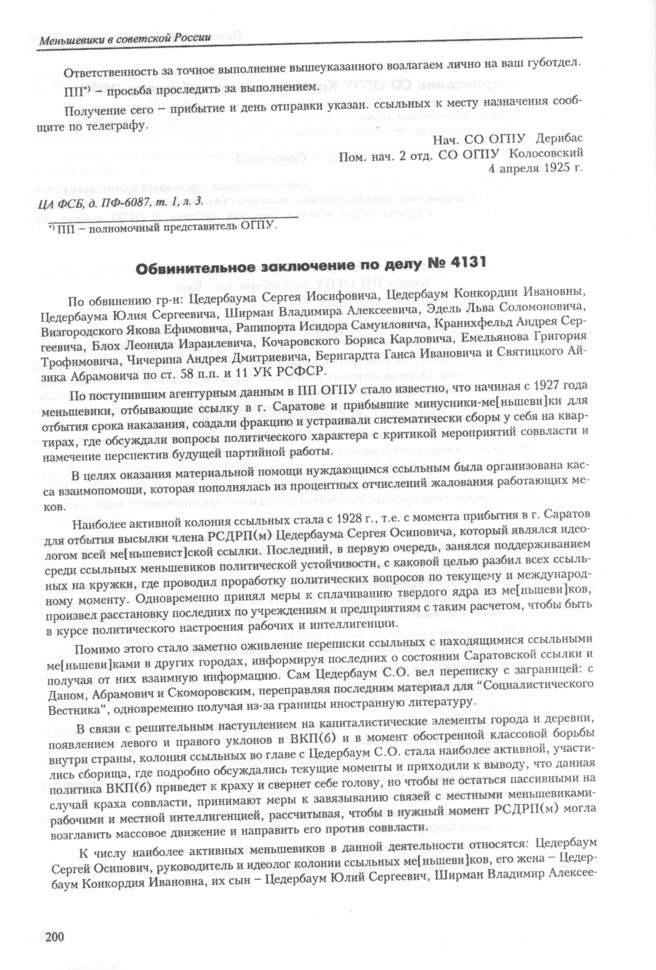 Обвинительное заключение по делу № 4131. 1930 г. // ЦА ФСБ, д. ПФ-6087, т. 2, л. 157-160.