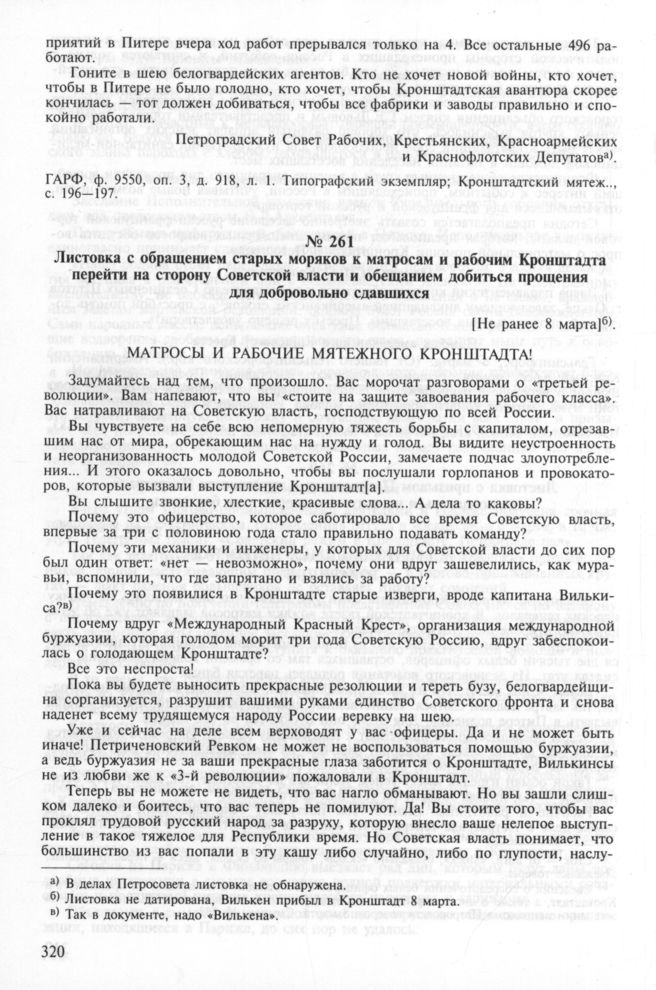 Листовка с обращением старых моряков к матросам и рабочим Кронштадта перейти на сторону Советской власти и обещанием добиться прощения для добровольно сдавшихся. [Не ранее 8 марта]