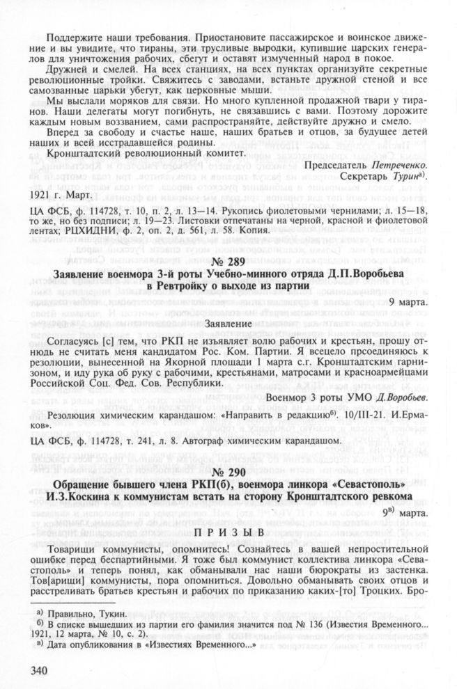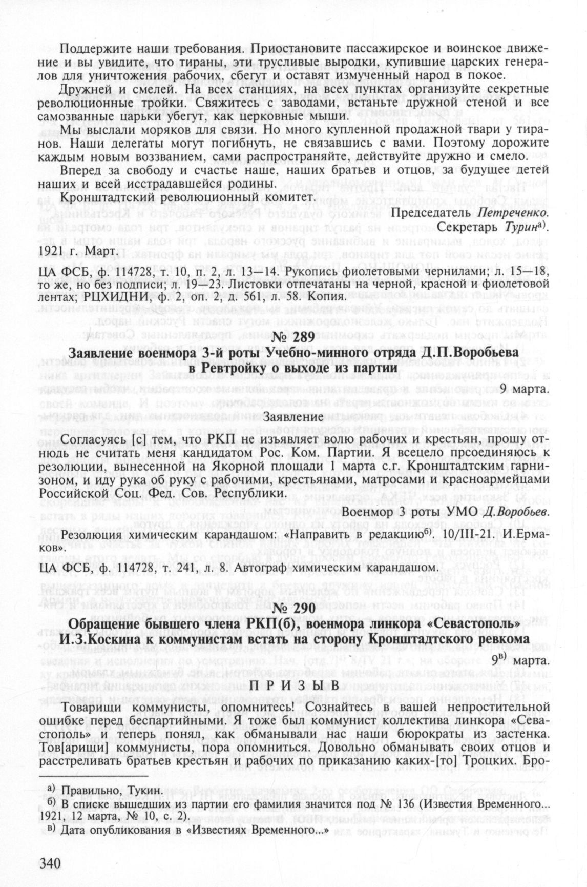 Кронштадтская трагедия 1921 г. Документы. В 2-х кн. Кн. 1. — М.: РОССПЭН, 1999.