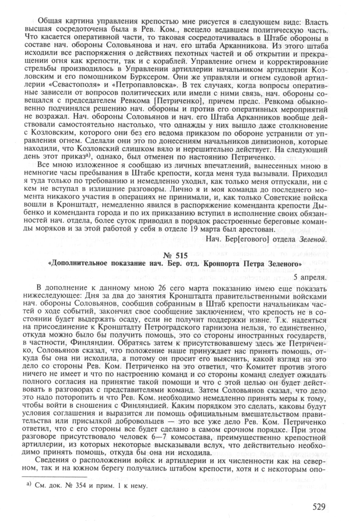 Протоколы допросов начальника Берегового отдела Кронпорта П.А. Зеленого 26 марта и 5 апреля. «Дополнительное показание нач. Бер. отд. Кронпорта Петра Зеленого». 5 апреля // ЦА ФСБ, ф. 114728, т. 25, л. 20-26, 27-28. Подлинники. Рукописи коричневыми чернилами (протокол от 26 марта) и простым карандашом; л. 15-19. Заверенная копия (пр. от 26 марта); т. 17, п. 3, л. 9-19 и об. Копии.