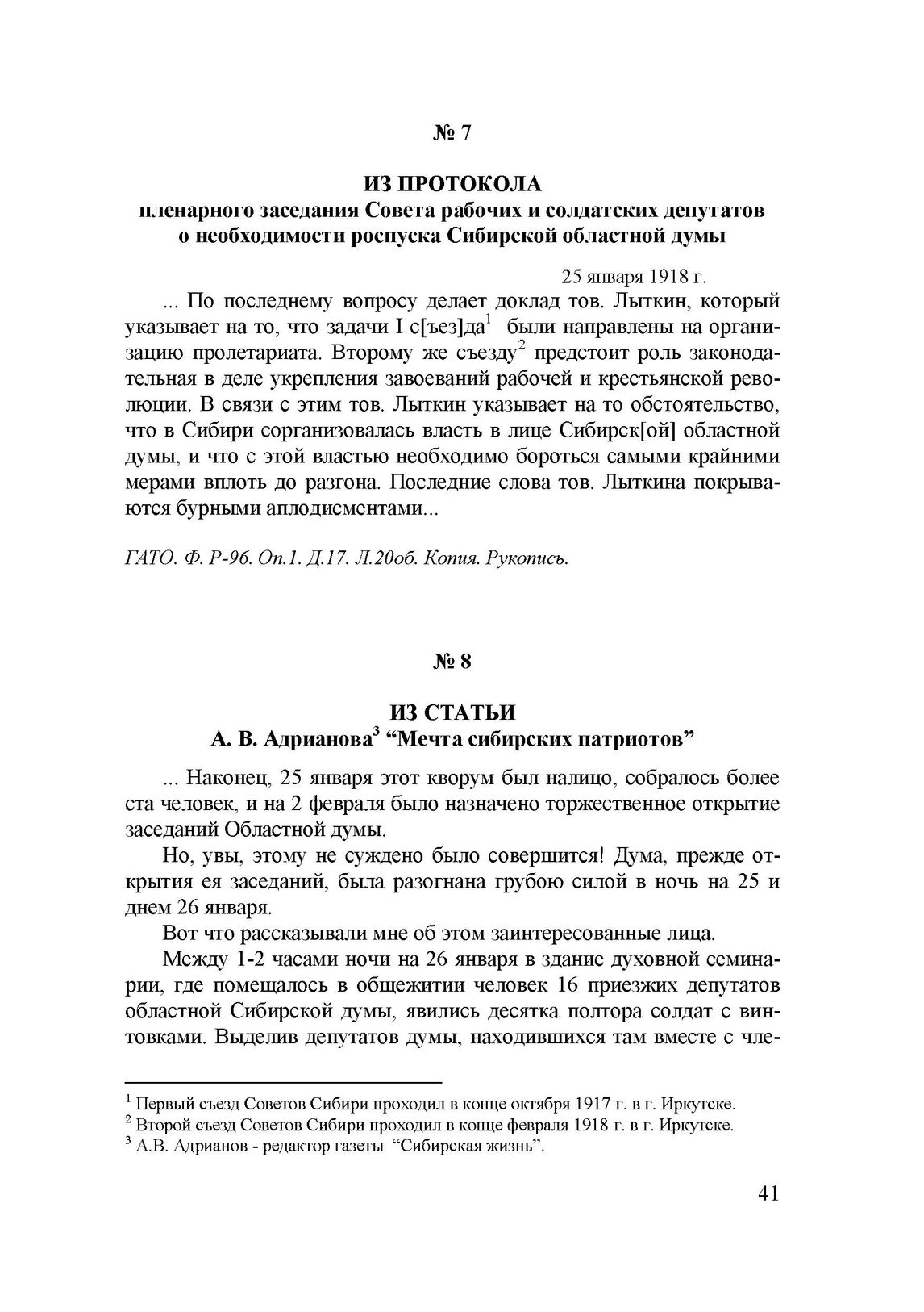 Из истории земли Томской. 1917-1921. Народ и власть: Сборник документов и материалов. — Томск, 1997.
