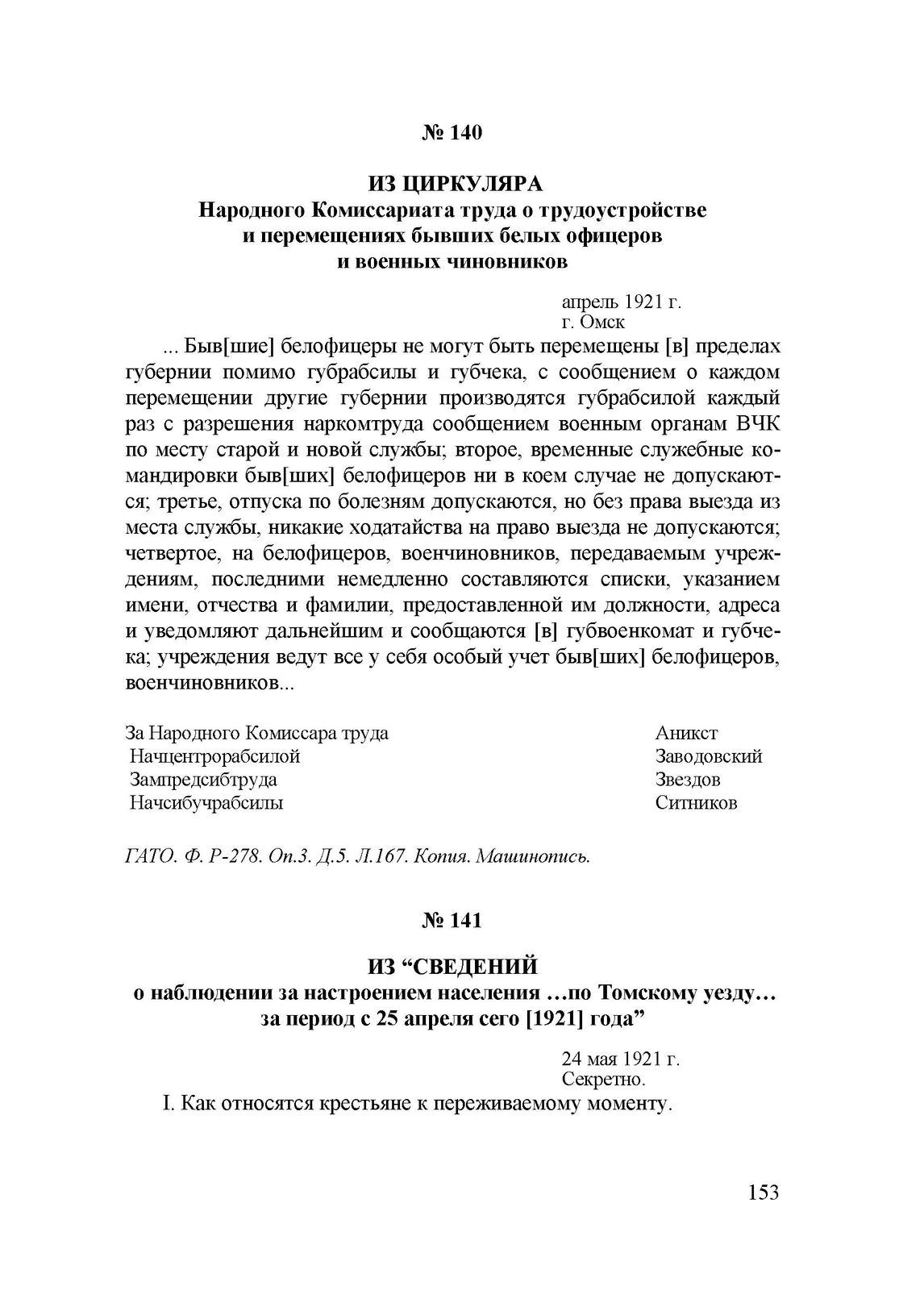 Из “сведений о наблюдении за настроением населения …по Томскому уезду… за период с 25 апреля сего [1921] года”. 24 мая 1921 г. // ГАТО. Ф. Р-278. Оп.2. Д.11. Л.25. Копия. Машинопись.