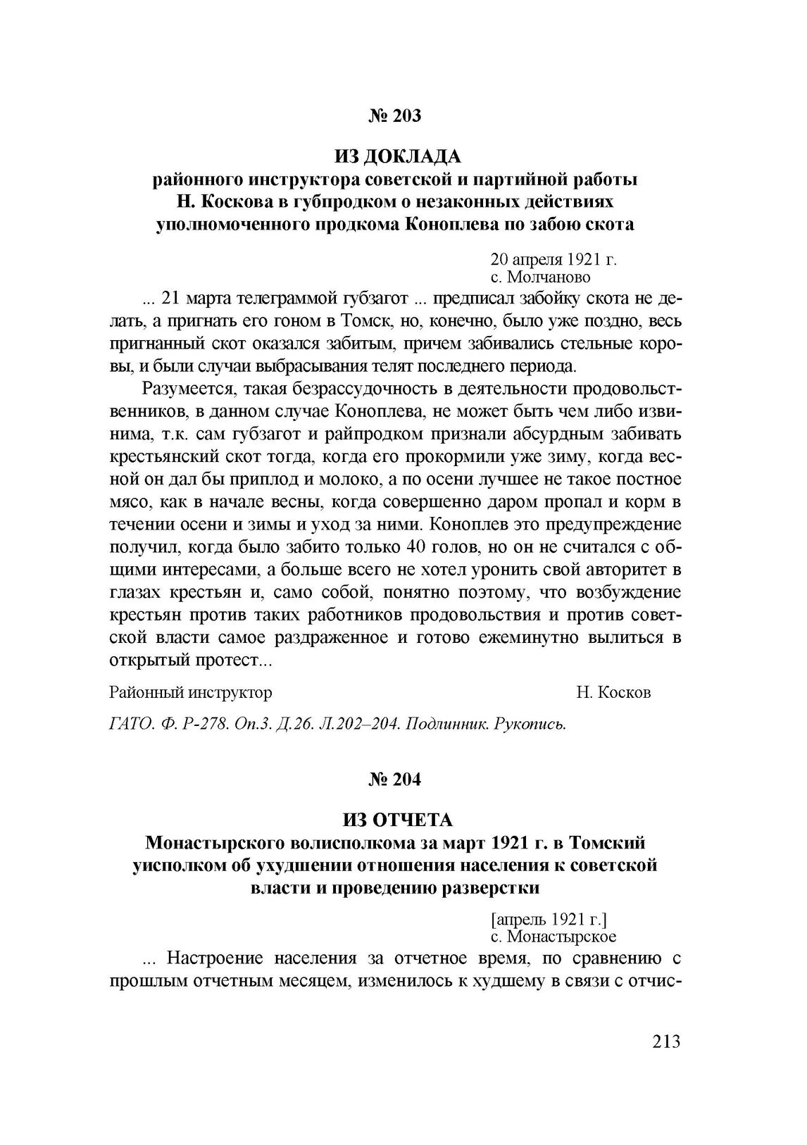 Из отчета Монастырского волисполкома за март 1921 г. в Томский уисполком об ухудшении отношения населения к советской власти и проведению разверстки. [Апрель 1921 г.] // ГАТО. Ф. Р-202. Оп.1. Д.307. Л.101. Подлинник. Рукопись на типографском бланке.